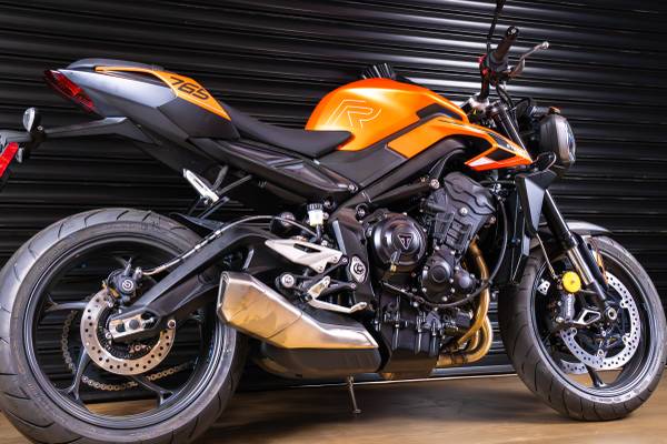 The 2025 Triumph Street Triple 765 R is a bold, middleweight naked performance bike that bridges exhilarating power and sharp street handling. Built around a Moto2-inspired 765 cc inline three engine, it delivers about 118 hp at 11,500 rpm and 59 lb ft of torque at 9,500 rpm