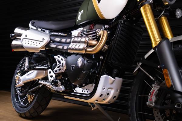 2026 Triumph Scrambler 1200 XE with six riding modes to fine-tune its responses, the Scrambler 1200 XE adapts seamlessly to your terrain and riding style. Beneath powder-coated engine covers and bright-machined cooling fins, the 1200 cc Bonneville twin packs 110 Nm of torque for instant response to every twist of the throttle.
