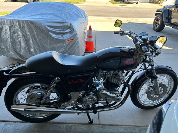 Full Frame Off Restoration. Full Documented Engine Rebuild , Balanced Engine . Brand New Factory Cylinder Block (Not Bored Out ) All Jim Schmidt of JS Motorsport engine parts. Lightweight Pistons and Carillo Piston Rods . Brand New With a substantial loss in weight there is much less Norton Engine Vibration . Engine block case oil pickup area has been machined and altered to increase oil flow which was a huge problem on the high compression Combat Engines. Jim Schmidt Reed Valve Breather that stops Oil Sumping and high pressure build up in the engine which causes oil leaks. JS Radius Camshaft . The bike also has Keihin CR 33 Carbs which get rid off the pathetic stock Amal Carbs . This bike starts on the first kick, and the performance is incredible. Superblend Bearings, Borrani Shouldered Rims, Electronic Ignition, High Performance Coils. New tires, machined wheel hubs by Colorado Norton Works to Allow Seal Wheel Bearings to be installed. The Transmission is also completely rebuilt . New drive chain and sprockets , new battery and the list goes on. Go to JS Motorspor . Com to view Jims parts and technology. This is a easilly a $7000.00 Engine like no other on the market.PLEASE GO TO VINTAGE BIKE OC and search pictures for multiple pics of the bike.