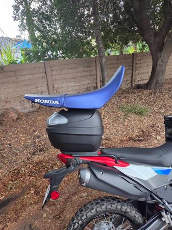 Like new and never been down dual sport motorcycle. Very well taken care of by an older rider. Absolutely nothing wrong with this motorcycle. We just need to move. So the motorcycle must go. Comes with top case and a very comfortable seat by seat concepts. Also Comes with the original blue Honda seat. No tariff, no tax, no dealer fees,just a very low mileage bike for a great price. I hate to let it go. But I have to for now. Clean title in hand.