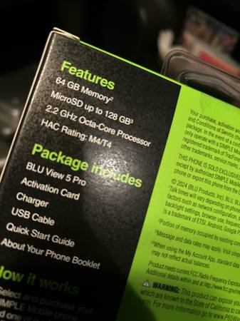 BLU VIEW 5pro Unlimited talk & text w/ high speed data plan included 64 GB phone memory With 128 GB MicroSD card 3 day battery life Activation card included (Call toll free # and give code on...