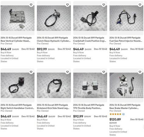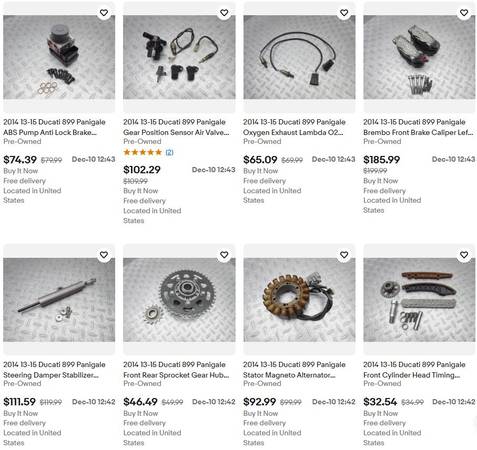 To view parts from this bike, go to TheMotoGuys.com and in the search engine type in "2014 Ducati Panigale 899" Used parts available in ANAHEIM will show up.