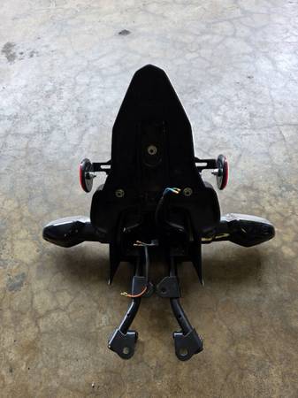 Honda 300CBR rear fender and bracket license plate holder with turn signal lights, nothing wrong with it, removed from my Bike to install LED lights. Thank you.