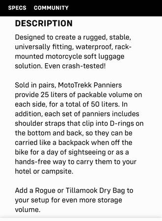 Brand new set of Giant Loop brand dry bags perfect for adventure bikes. Universal fit to all racks. Paid $450+shipping.