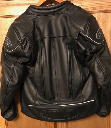 Excellent Cortech high quality leather jacket. Vented and armored in the shoulders, elbows and back, providing great protection. Stretch waistband. All zippers work properly. Only worn a few times. Like new and in excellent condition. It's labeled size 12 (large) which I believe is referring to women's size but will also fit some men.