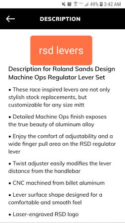 New Roland Sands design RSD hand controls * contact me through the craigslist chat my email isn't working * thanks RSD levers for 08-13 touring models $75-$125... Some are chrome. Some are...