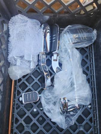 Streamliner floorboards and passenger pegs brackets shifter Peg brake pedal cover Etc Chrome and black. Front lights for the Batwing fairing $75.