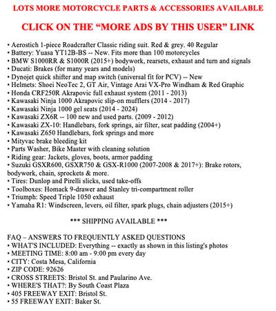 LOTS MORE MOTORCYCLE PARTS & ACCESSORIES: Click on the “more ads by this user” link.