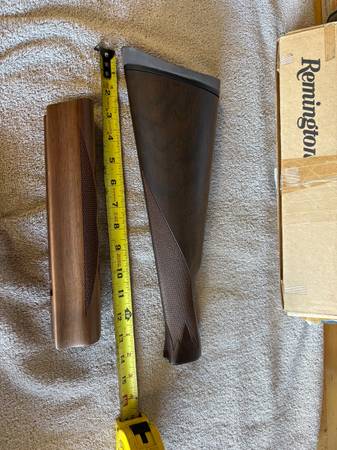 Remington 1100 20 GA. Shotgun Stock and Forend. Beautiful satin finish. Special field English butt stock. Never mounted, no scratches. Possibly would fit 28 or 16 gauge also but Unknown. Buyer is more than welcome to bring firearm over and try out to make sure fit is correct.