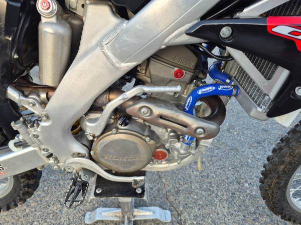 2008 Honda CRF250R. Just went through the carburetor. Runs great. All stock motor. Twin pipe. Renthal Twin Wall bars. Thrill Seekers seat cover. Silicone radiator hoses. Stock steering damper. Fresh oil, filter, and clean air filter. Title in hand with current registration. Sorry, NO TRADES.