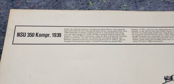Hard to find poster from Bagnall Publishing Company in Lake Arrowhead, for the NSU 350 motorcycle. Measures about 19" x 15"
