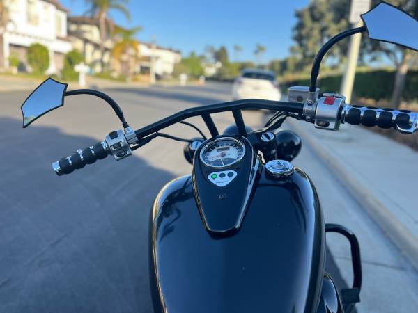 2010 Kawasaki Vulcan 900 custom cruiser with only 10k miles. Many custom parts including a full steel rear wheel hiding behind hard locking bags and a custom rear fender with led brake lights. Day maker headlights provide tons of visabillity for both rider and oncoming traffic. Fuel injected 900cc cruiser that fires right up and runs strong and sounds great with Vance and Hines exhaust pipe. Registration good through next year.