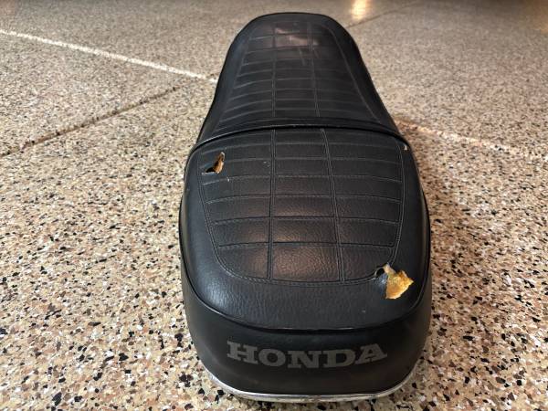 Used OEM seat from a 1974 CB550 Four K0 that’s modified to be low profile. Comes with mounting hardware and a hinge piece. Seat has a couple of holes (in photos) but otherwise comfortable and works...
