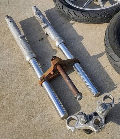 1992 Harley Davidson Sportster Motorcycle OEM Forks/Triple Tree/Rear Fender/Rear Wheel Belt Drive Pulley Sprocket... I believe the forks are compatible with years 1988 thru 1995 Sportsters. They could possibly be compatible with other models too but I don't know.