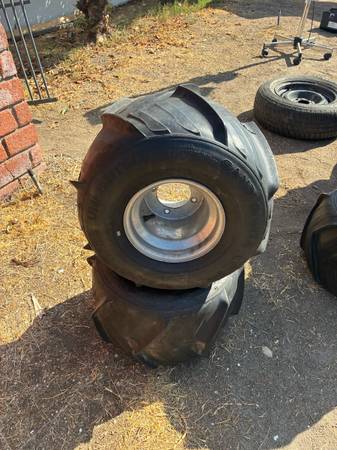 2 aluminum quad rear wheels with sand tires, good condition almost like new with 4 on 4 1/2 bolt pattern