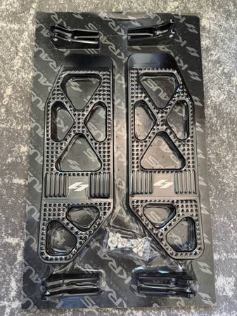 Fits Harley-Davidson touring chassis bikes. New in packaging. KRAUS Max Lean footboards and foot control kit with passenger footboards. Will fit 2009 - 2025 touring chassis.