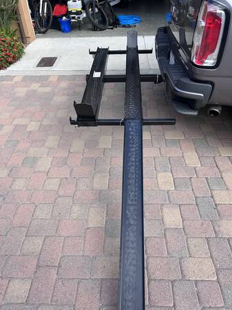 Nearly New (3 months old) wide motorcycle hitch ramp/hauler. Most of these type ramps are rated for a maximum of 400lbs. This one will take two motorcycles up to 1000 pounds. I've used it to transport two 300+ pound Dual-Sport motorcycles.