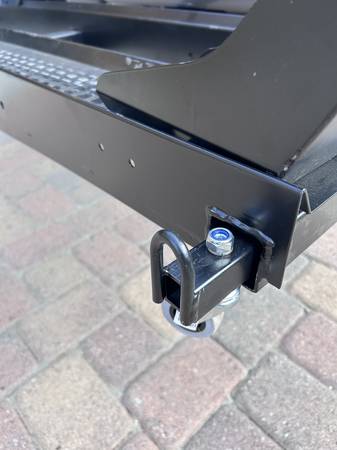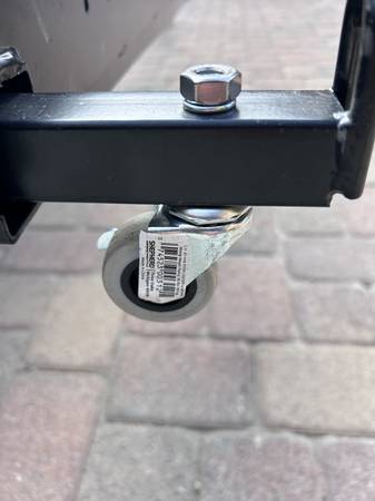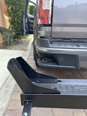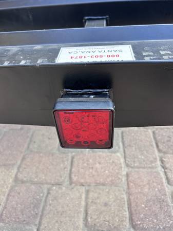 Be safe, be secure. Four tie down mounts, two wheel chocks, one loading ramp that stows away on the hauler. I've added "garage wheels" (see pic) for easy storage and movement in the garage and added a brake light for additional visibility, safety and compliance. Was $599 plus shipping. Save hundreds on this nearly new rack. $350