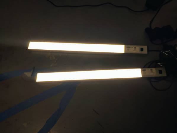 Did not use much. Illuminates work surfaces Energy efficient 20W LEDs. Bright and long lasting. 2,000 lumens. 120 Volts. Sells on the website for $75 each... Asking $90 OBO for both 949 3 five five...