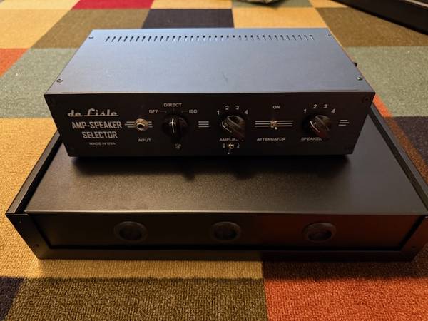 For sale is my De Lisle 4x4 Deluxe amp switcher. This can be used to switch between 4 tube amps and 4 cabinets. All 4 tube amps can be turned on and ready, and this switcher provides a safe "load" for the unused amps, while allowing signal through for the used amp. There is also an attenuator loop in case you want to crank the amps while at a reasonable volume.