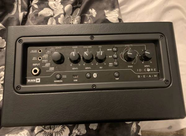Up for sale is a Blackstar BEAM ID core amp it’s practically in mint condition , comes with the original power cord . It sounds great with 2 - 3 inch speakers for stereo sound … it can be used for electric guitar , acoustic , or bass , it also has built in Bluetooth to easily jam along to tracks or to just use it as a Bluetooth speaker . You can also plug it into your computer or laptop for further editing and creating presets . Really big sound for a small amp .