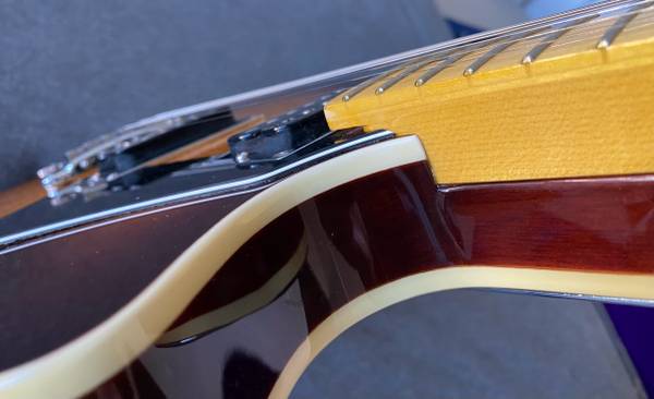 This one is in excellent condition with very minimal signs of playwear; a few superficial scratches that could buff out, no buckle rash, virtual no fret wear. The only ding I could find is a tiny one in the back of the headstock - hardly noticeable.