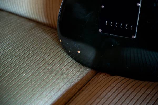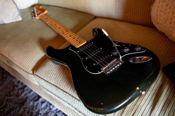 1979 original Fender Stratocaster in all black. Very decent condition for a vintage guitar, with some fret and finish wear, as seen in the photographs. Plays beautifully, and sounds perfect. Originally owned by Gail Worth of Gail's Harley Davidson.