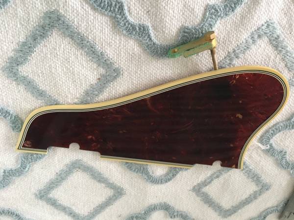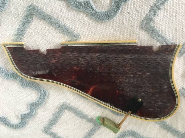 Gibson L-5CES, L-4CES, Super 400 Pickguard in good condition with mounting bracket. I don't recall which guitar I removed this from or if it's late '60's or a re-issue but I have had it stored for a long time. Either way, it's still a good replacement guard for your instrument and has a nice aged look. It comes with the bracket that I'm pretty sure is at least from the 60's.
