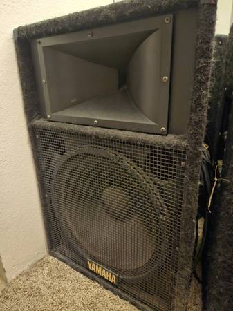 (2) Yamaha S115IV Speakers with cords to connect to your amp (2) On Stage speaker stands with carrying bag. (1) Dynamic Microphone with cord and stand. This is a great deal!