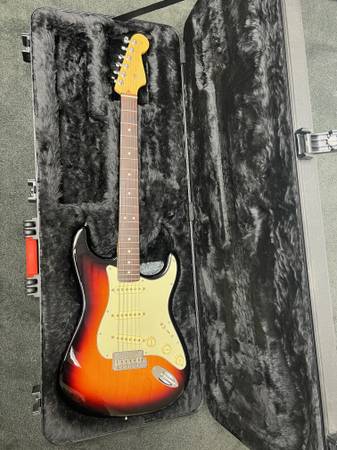 Sunburst with rosewood fingerboard. Great condition. A couple indents on the neck and body, no major scratches. Very slight fret wear. Comes with hardshell case, there is a crack in the corner (see pics).