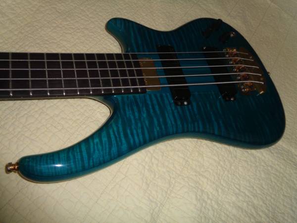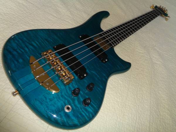 Vintage 1995 Alembic Essence V Flame top teal burst.