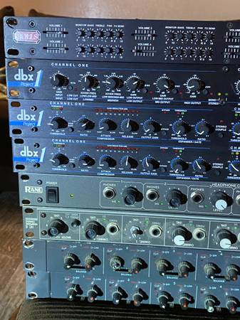 Rolls RM65 Rackmount Mixer 6x4 - $95 DBX266A Project 1 Compressor/Gate - $70 DBX234 - $120 SOLD Rane HC6 Six independent stereo headphone amplifier - $75 TOA D-3 compact 1U rack-mount 4-channel...