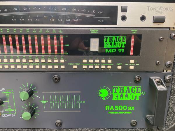 I'm selling from my professional recording studio Trace Elliot MP11 Programmable preamp, Trace Elliot RA 500 Super X power amp. Comes with Korg Toneworks DTR-2 Rack Tuner and 6U rack case. This was only used in a professional recording studio. Excellent working condition. Amazing sound!!!