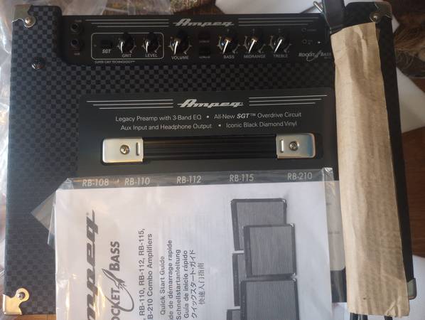 Brand new condition AMPEG RB 112 Bass amplifier. No issues whatsoever of any kind. Received three brand amps and have decided not to keep this one. Serious inquiries only. Thank you.