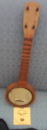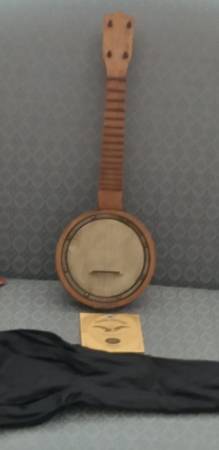Vintage banjo ukulele tuned to GCEA. Has old style violin friction tuners, good skin, gig bag and spare strings. Has a nice sound for its small size. Over 100 years old. Could be Pacifica brand,...