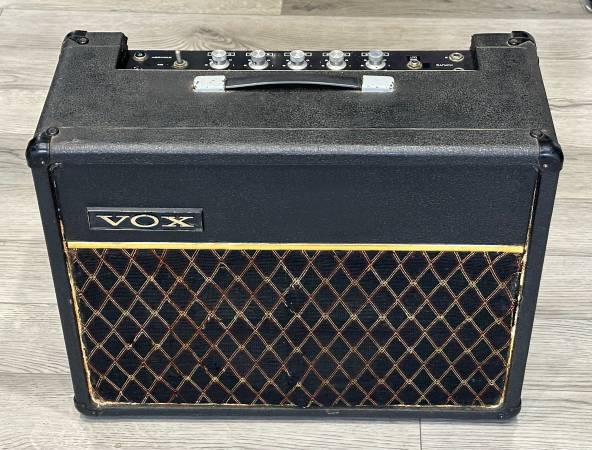 A vintage 1966 Vox Pacemaker 1x10 tube combo amp. Manufactured in the USA, by the Thomas Organ Company, these domestic Vox tube amps feature a circuit and sound that is all their own. Somewhat Fender-ish in sound, the Pacemaker has a extended, silky top end while still maintaining a defined bottom. With its great all-tube tremolo, this little amp can give a Princeton a run for its money--albeit a lot less money. The number 3 input has been converted to a line level output for recording etc. This amp has had new caps installed and has been cleaned and serviced. It is fully functional and sounds great. Comes with a single button footswitch.