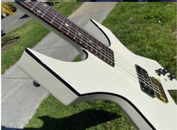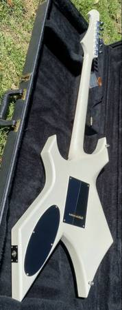 1985 BC Rich Warlock II USA Electric Guitar in Glitter Rock White. Super clean all original condition. Neck through body. Brass tremolo and Dimarzio pickup. Comes with case. Text me to see it