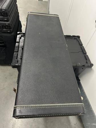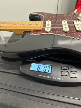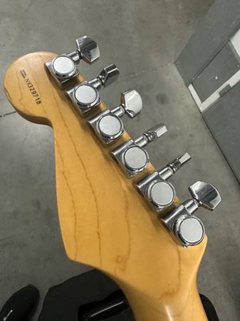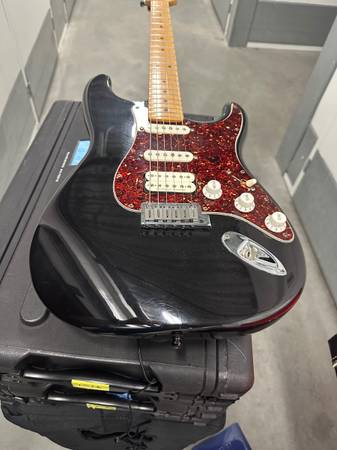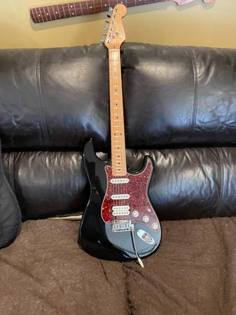 1998 black Stratocaster in great shape with locking tuners with case. Pearly Gates pickup in treble position, Texas specials in neck and middle, a great sounding and playing guitar