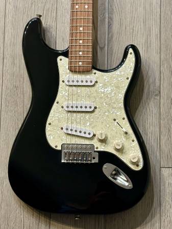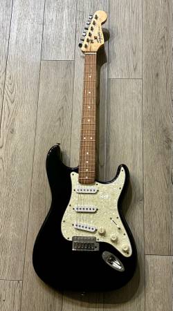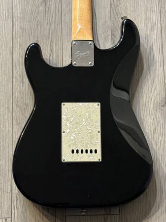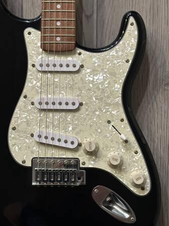 2009 Squier Stratocaster Electric Guitar Strat. Upgraded with Pearloid Pickguard. New 9 gauge strings. Excellent condition. All electronics work great. Low action and plays great. No case. Text me...