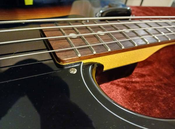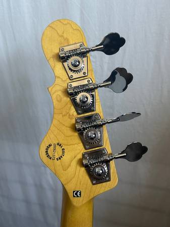 Neck is maple with a dark rosewood fretboard. G&L kept the traditional P bass neck profile, which is attached with six bolts instead of 4.