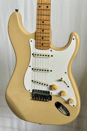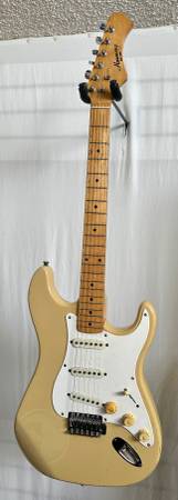 80s Harmony H80T Stratocaster Electric Guitar in vintage white finish. Has lots of finish wear from stickers previously on the guitar. These have an amazing maple neck. Body is sold wood. A cool...