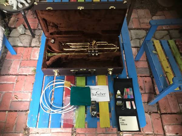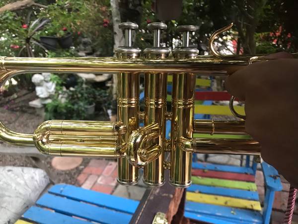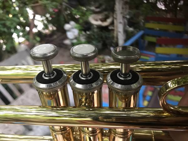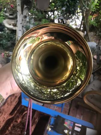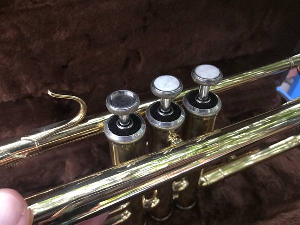 ~ brother’s unused trumpet ~ comes with unused Vincent Bach mouthpiece ~ CONDITION ~ ~ one of the 3 mother-of-pearl buttons is missing ~ buttons need to be oiled to be pressed