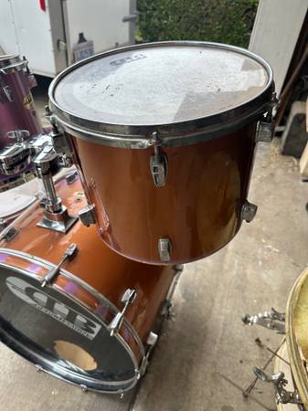 DB Percussion Drum Set similar to Pearl CB Tama Ludwig etc. Missing some hardware. I don't have the tom mounts.But I’m pretty good shape. Cool iridescent finish.