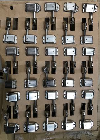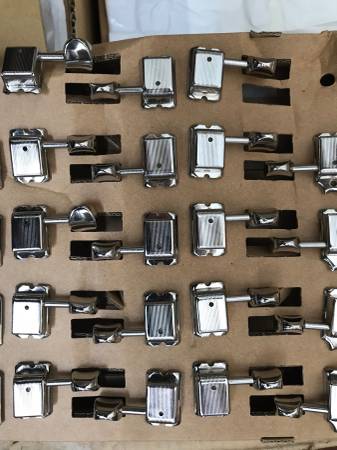 I have a quite a few sets of Fender Kluson Tuning Keys UN-USED inline 6 for Stratocaster. These are the tapered/staggered versions where the height of the post goes from tall to smaller from the low E string to the high E string. I do not have the the bushings or screws, but if you are replacing your existing tuning keys, you already have those. Just selling 6 tuners, LIKE NEW never used.