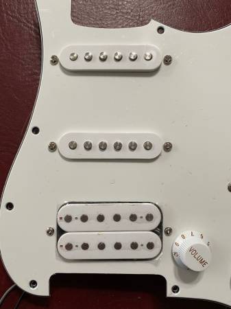 Fender Squier Fat Strat HSS Straocaster Pickup Pickguard Loaded Guitar part. Still has protective plastic on pickguard and pickups! I have quite a few of these to choose from, new never used....