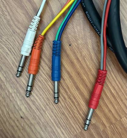 Hosa High Definition 8 Channel Recording Snake Cable. 8 1/4 Make mono to 4 1/4 Male Stereo. 6 feet long Text me to see it