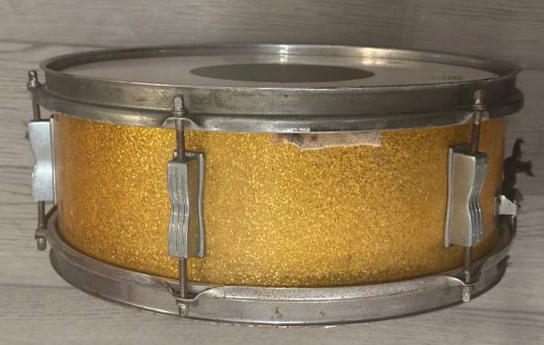 Ludwig 1960’s Gold Sparkle No. 491 Pioneer 5x14" 6-Lug Snare Drum, Keystone Badge. Needs cleaning up. Text me to see it