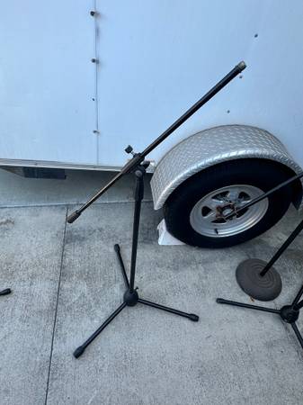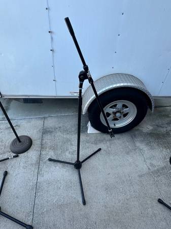 Microphone Straight Stands by OnStage Ultimate Support Musika Straight stands $20 each Boom Stands $25 each Kick drum stand $25 Note: I sold the stands with the Round base. Text me to see them