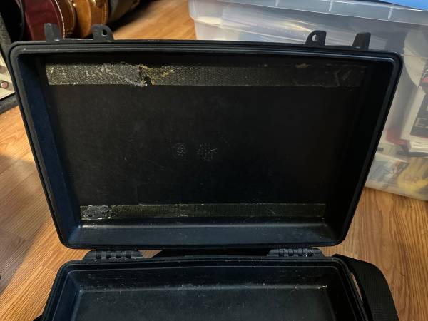 This is a Pelican 1470 Brief Case. Great for carrying a laptop computer or musical instrument accessories. One latch is broken. But you can buy a brand new pair of latches with keys for $29 on eBay. It works fine with just the one latch. So you don’t really have to replace it with new latches if you do not want to. This case is about $175 new. Selling for $40 as is.