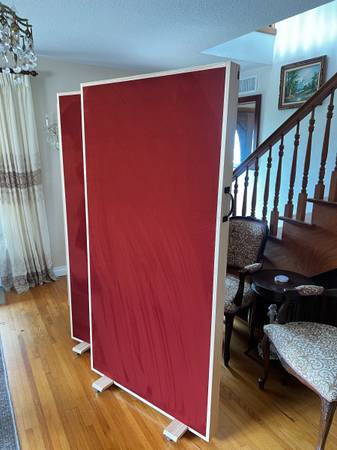 Dimensions of the gobos are 38 inches wide, 75 inches tall, and 3.5 inches thick.